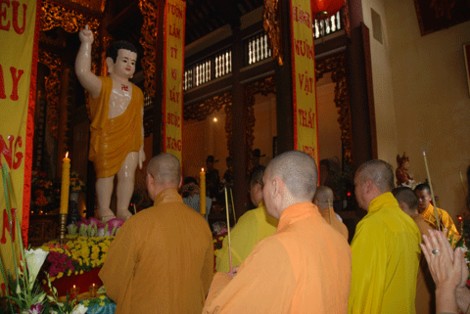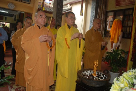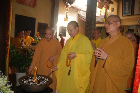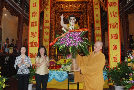 Cuối buổi lễ tôn đức Thượng toạ, Đại đức Tăng Ni cùng các quý vị đại biểu làm lễ dâng hương tắm Phật trong không khí trang nghiêm hoan hỷ.