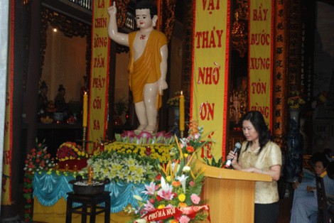 Nhân dịp này bà Cao Bích Lan thay mặt lãnh đạo Quận tặng hoa và phát biểu chúc mừng nhân dịp đại lễ Phật đản.