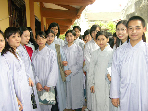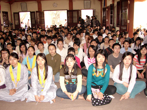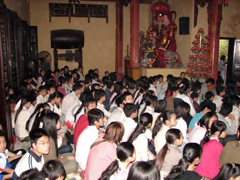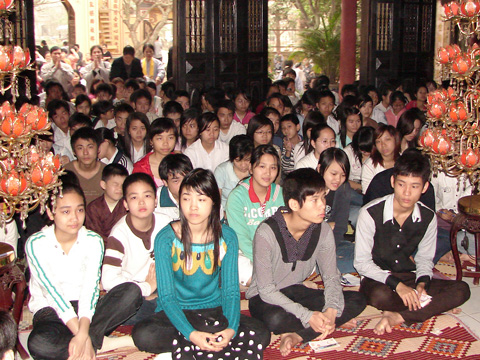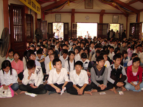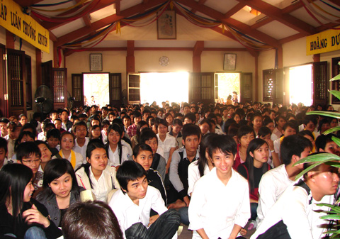 Các em học sinh vân tập tại chính điện chùa Bằng A