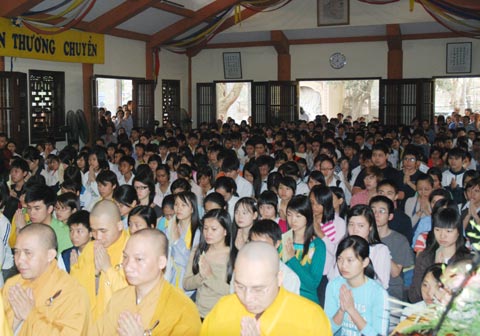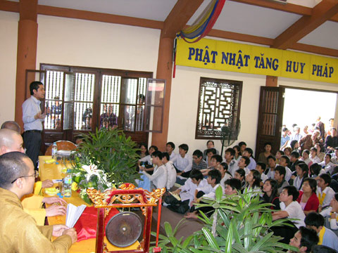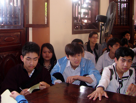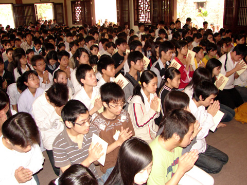 Bỡ ngỡ, háo hức và thành kính là cảm xúc chung của các em trước giờ khai lễ. Trung, học sinh lớp 12 trường THPT Trần Phú (Hà Nội) tâm sự: “Mặc dù luôn cố gắng học tập nhưng em rất lo lắng trước các kỳ thi sắp tới, nhất là thi đại học. Sáng nay đến đây, em mong được các Thầy tư vấn cách tự tin và giảm căng thẳng trước kỳ thi. Em cũng sẽ thành tâm cầu Đức Phật phù hộ cho em thi tốt”.