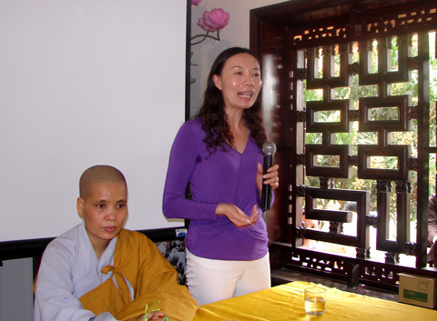 Tiếp theo, ĐĐ. Tiến sĩ Thích Đức Thiện, TS. Phạm Thu Hương và các cư sĩ Huệ Minh, Trần Trọng Hoàng chia sẻ với các em về một số yêu cầu và kinh nghiệm học, thi hiện nay, về phương pháp tư duy và “mẹo học” hiệu quả, thiết thực. ĐĐ. Thích Tâm Thuần – trụ trì thiền viện Sùng Phúc hướng dẫn các em tập thở sâu, tập thư giãn khi học và thi.