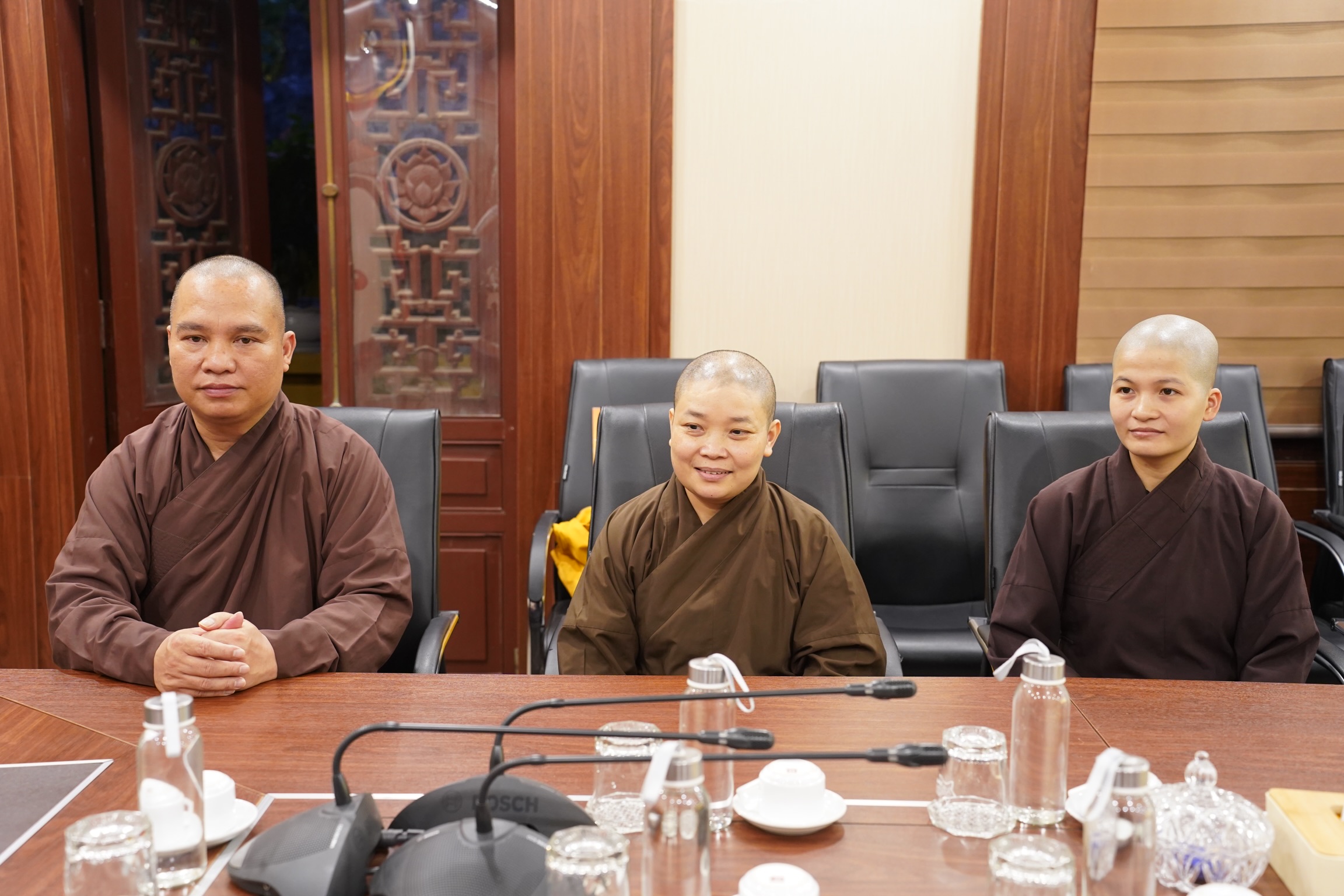 Tiếp đón phái đoàn có Hoà thượng Thích Thanh Nhiễu – Uỷ viên Thường trực HĐCM – Phó chủ tịch Thường trực HĐTS GHPGVN; Thượng toạ Thích Thanh Huân – Uỷ viên thư ký HĐTS GHPGVN –  Phó Văn phòng Trung ương GHPGVN.