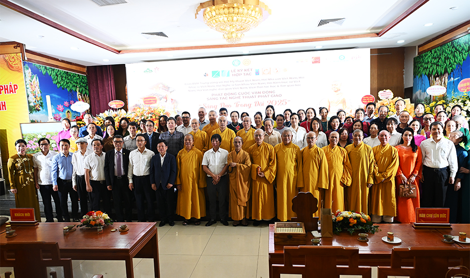 Chiều Ngày 11 tháng 10 năm 2025 nhằm ngày 20 tháng 8 AL năm Ất Tỵ, tại Hội trường Chùa Quán Sứ – Trụ sở Trung ương Giáo hội Phật giáo Việt Nam (GHPGVN), Ban Văn hóa Trung ương GHPGVN long trọng tổ chức Lễ ký kết hợp tác giữa Ban Văn hóa Trung ương với các cơ quan, hội chuyên ngành Trung ương về văn hóa, nghệ thuật, dân tộc và đồng thời, chính thức phát động cuộc vận động sáng tác nghệ thuật Phật giáo “Sáng Đạo trong đời” năm 2025.