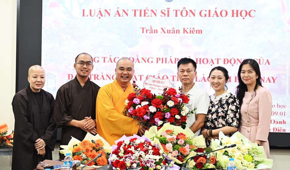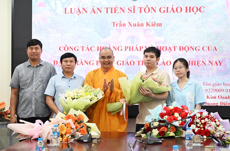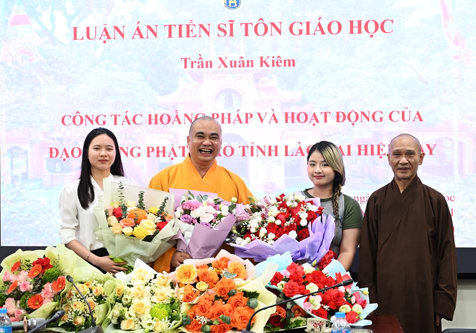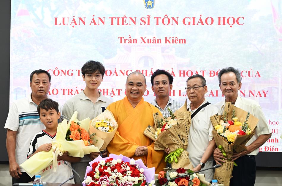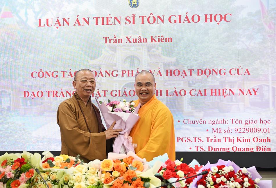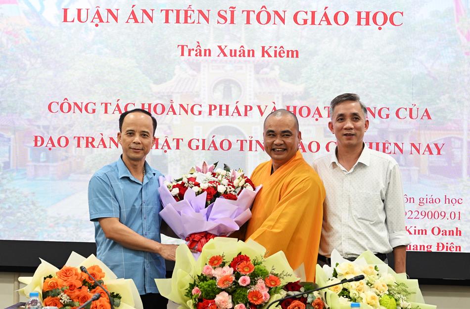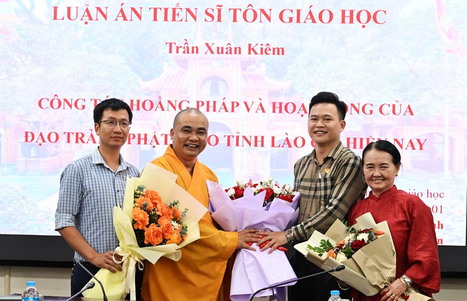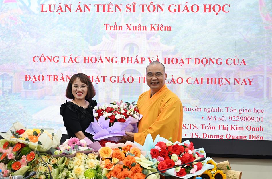Nhân dịp này những người hướng dẫn khoa học Luận án tiến sĩ Tôn giáo học PGS, TS. Trần Thị Kim Oanh và TS. Dương Quang Điện có lời cảm ơn tới Hội đồng đánh giá Luận án và chúc mừng nghiên cứu sinh Trần Xuân Kiêm đã bảo vệ thành công luận án Tiến sĩ chuyên ngành Tôn giáo học. Đây là niềm vinh dự, tự hào cho Phật giáo tỉnh Lào Cai có thêm một nhà khoa học, hy vọng rằng với học vị này, tân Tiến sĩ Trần Xuân Kiêm sẽ đóng góp các công tác Phật sự nhiều hơn nữa , giúp Phật giáo tỉnh Lào Cai thực hiện tốt phương châm Đạo pháp – Dân tộc, thực hiện tốt công tác Phật sự và trách nhiệm với xã hội.