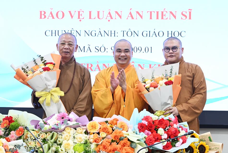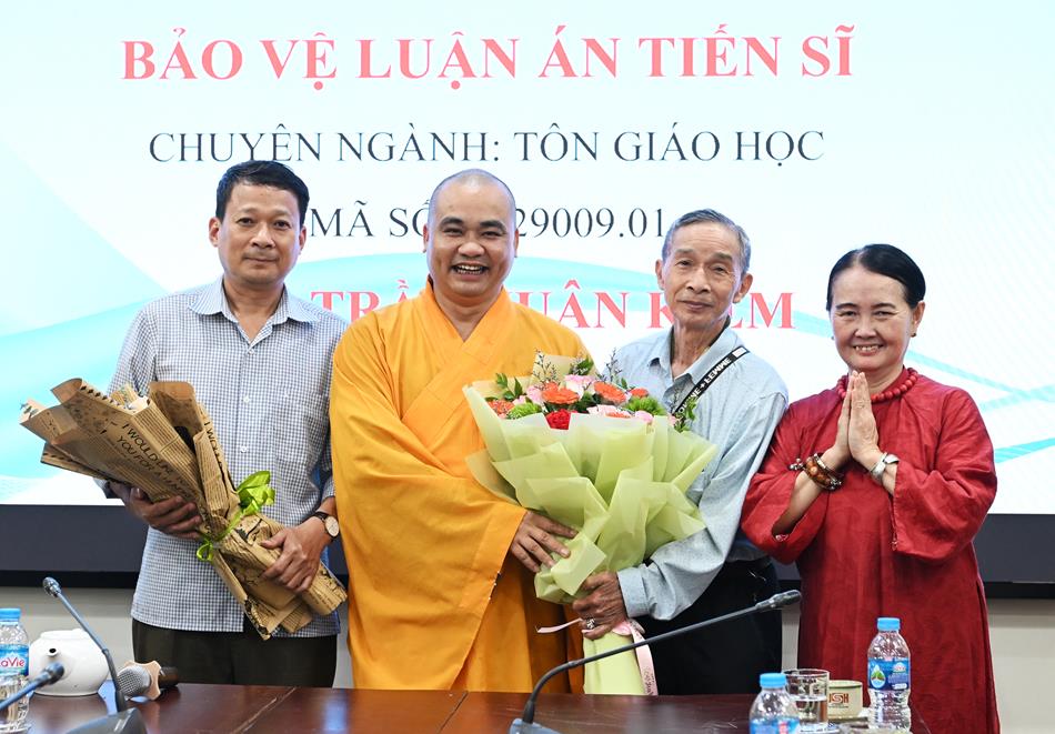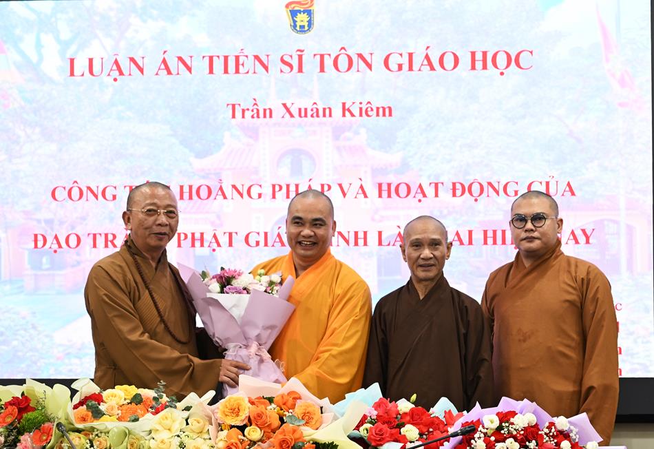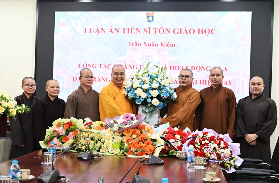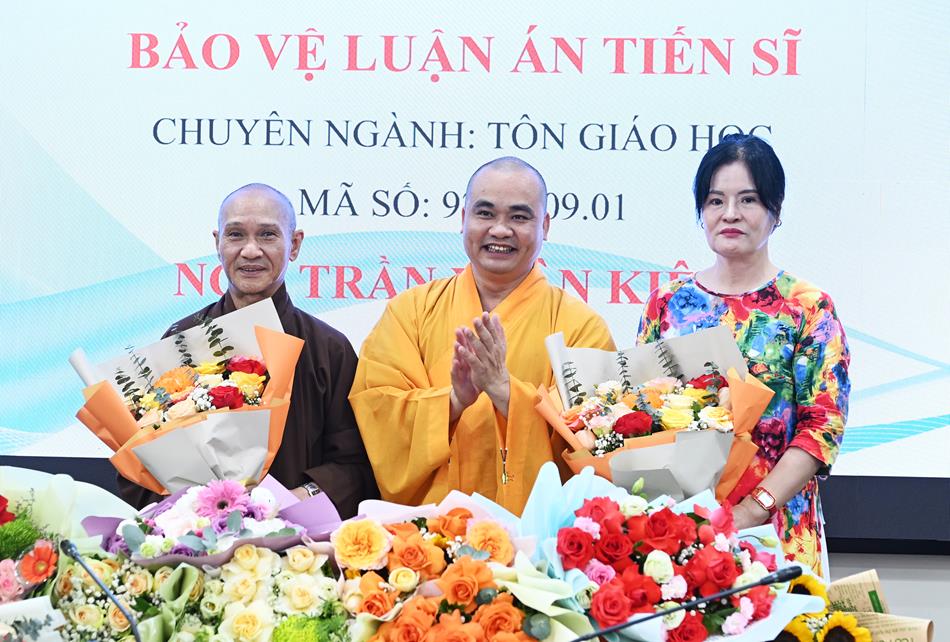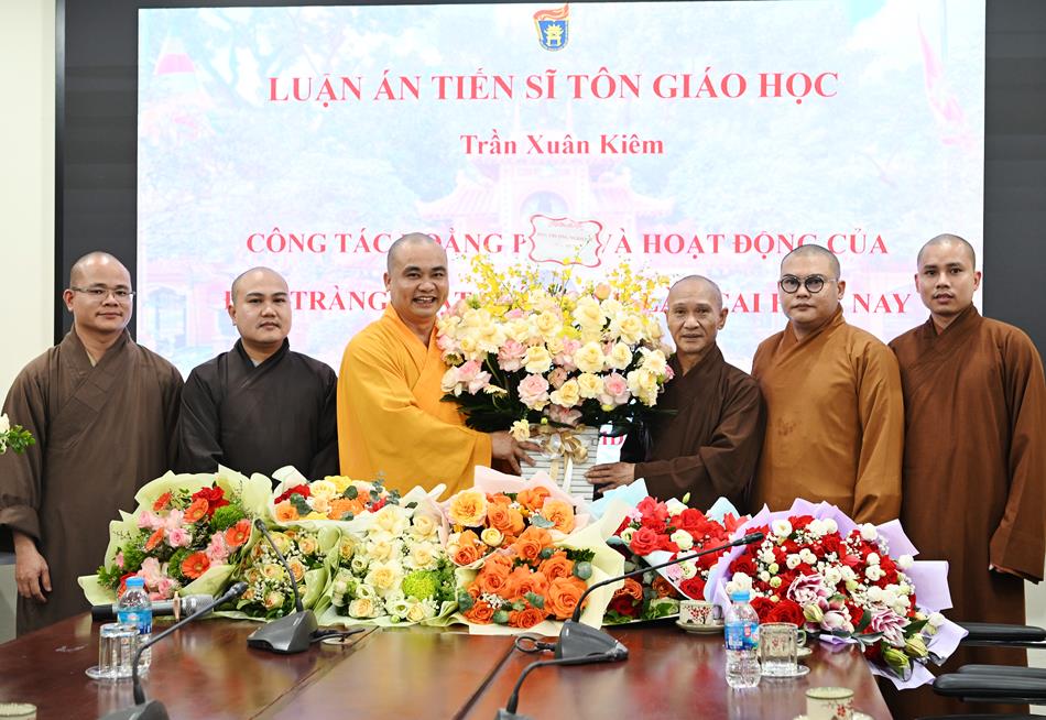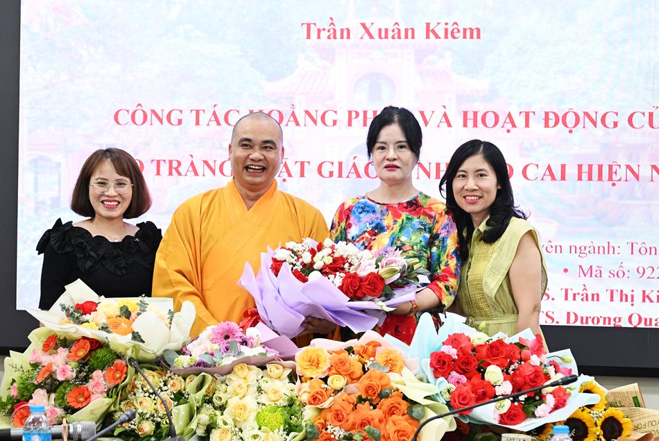 Nhân dịp này những người hướng dẫn khoa học Luận án tiến sĩ Tôn giáo học PGS, TS. Trần Thị Kim Oanh và TS. Dương Quang Điện có lời cảm ơn tới Hội đồng đánh giá Luận án và chúc mừng nghiên cứu sinh Trần Xuân Kiêm đã bảo vệ thành công luận án Tiến sĩ chuyên ngành Tôn giáo học. Đây là niềm vinh dự, tự hào cho Phật giáo tỉnh Lào Cai có thêm một nhà khoa học, hy vọng rằng với học vị này, tân Tiến sĩ Trần Xuân Kiêm sẽ đóng góp các công tác Phật sự nhiều hơn nữa , giúp Phật giáo tỉnh Lào Cai thực hiện tốt phương châm Đạo pháp – Dân tộc, thực hiện tốt công tác Phật sự và trách nhiệm với xã hội.