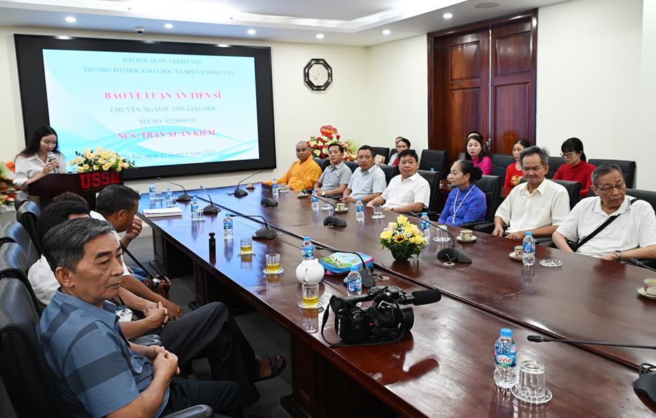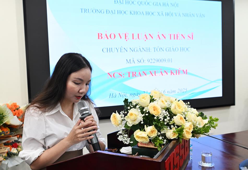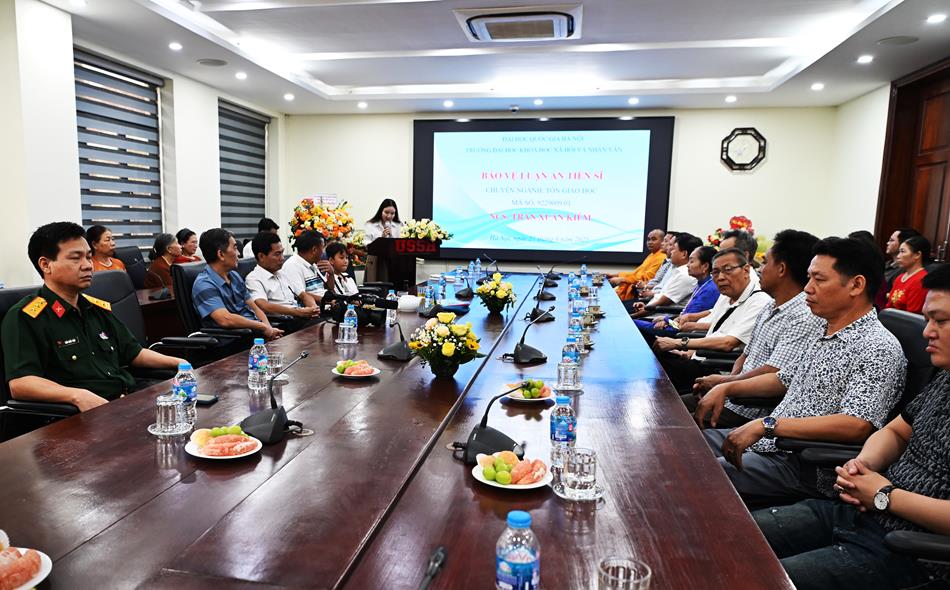 Ngày 26/6/2025, tại Hội trường E trường Đại học xã hội và Nhân văn đã tổ chức Lễ bảo vệ luận án Tiến sĩ cho nghiên cứu sinh Trần Xuân Kiêm, ngành Tôn giáo học mã số 922900901 với đề tài “Hoàng pháp và hoạt động của Đạo tràng Phật giáo tỉnh Lào Cai ”. Luận án được thực hiện dưới sự hướng dẫn khoa học của PGS.TS Trần Thị Kim Oanh và TS Dương Quang Điện.