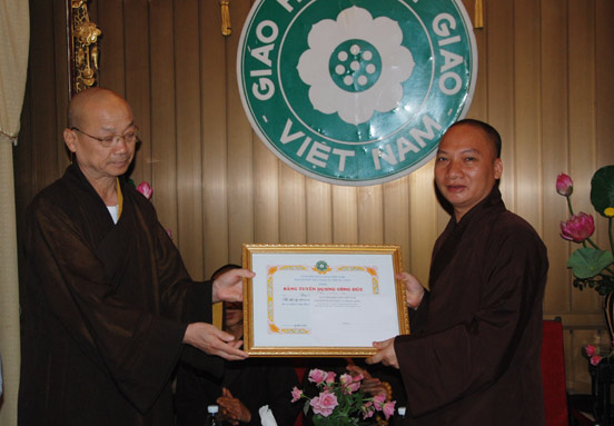 TT Thích Thanh Nhã trao bằng tuyên dương công đức cho các tập thể