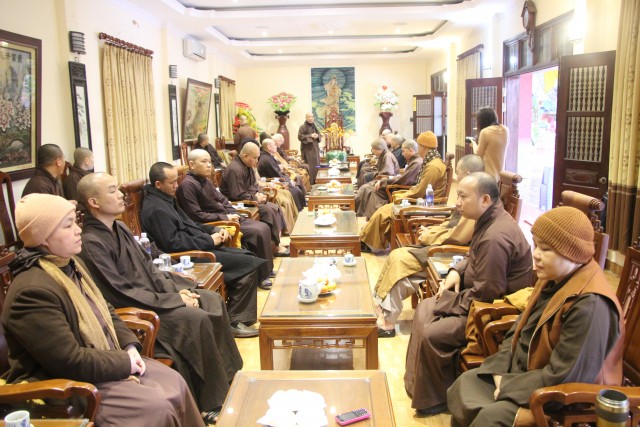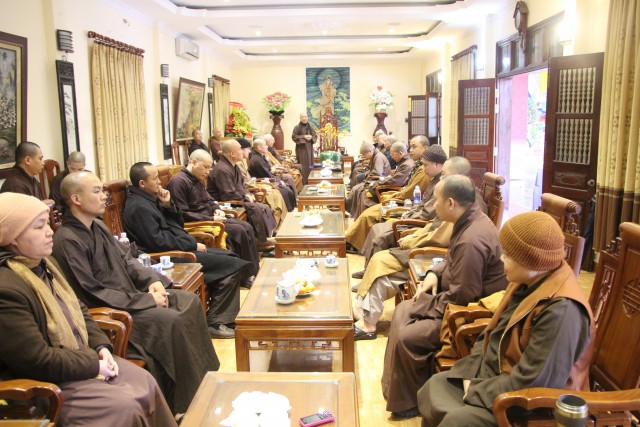 Mở đầu buổi họp, HT.Thích Bảo Nghiêm phát biểu khai mạc, kính chúc chư tôn đức sang xuân mới vô lượng an lạc, vô lượng cát tường và nhấn mạnh một số Phật sự quan trọng của ban Hoằng pháp trong thời gian tới, đặc biệt là hoạt động từ thiện và hoằng pháp tại tỉnh Điện Biên và tỉnh Quảng Ninh.