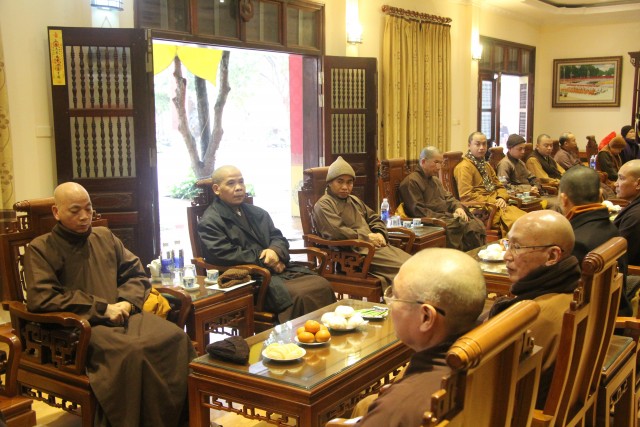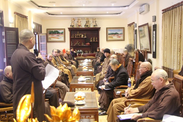 TT.Thích Thanh Quyết, Phó Chủ tịch HĐTS TƯGH thay mặt cho BTS GHPGVN tỉnh đã trình bày và xin ý kiến chư tôn đức về kế hoạch tổ chức chuyến hoằng pháp tại Quảng Ninh trong các ngày 8-10/5/2015. Chư tôn đức đã đóng góp nhiều ý kiến về các hoạt động Phật sự tại Điện Biên, Quảng Ninh để Phật sự thành công viên mãn.