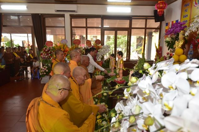 Tại buổi lễ, Chư tôn đức Tăng Ni Phật tử cùng các  quý vị đại biểu  trang nghiêm thành kính thực hiện nghi thức tụng kinh, tắm Phật,  nguyện cầu, thế giới hòa bình, Quốc thái dân an, chúng sinh an lạc.