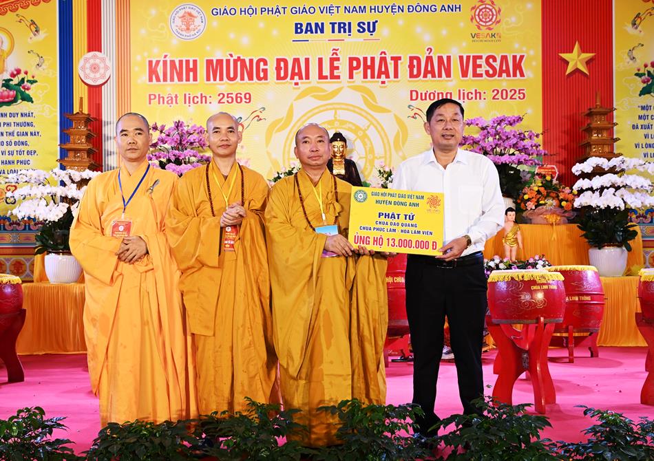 Nhân dịp này Ban Trị sự GHPGVN huyện Đông Anh và Phật tử Chùa Dao Quang – Chùa Phúc Lâm – Hoa Lâm Viện tặng quà Từ Thiện tới UBND xã Xuân Nộn – H Đông Anh Tp. Hà Nội.