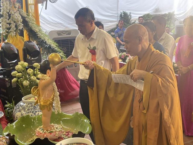 Sau đó chư Tôn đức cùng toàn thể đại chúng đã thực hiện nghi thức niêm hương, tụng Kinh Phật đản và làm lễ Mộc Dục trong tiếng niệm Phật trang nghiêm hướng về kỷ niệm ngày Đức Thế Tôn đản sinh.