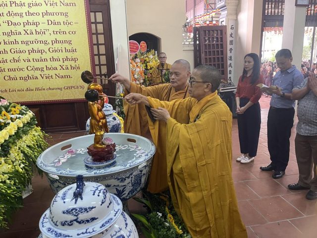 Khép lại buổi lễ, chư Tôn đức cùng toàn thể đại chúng đã thực hiện nghi thức niêm hương, tụng Kinh Phật đản và làm lễ Mộc Dục trong tiếng niệm Phật trang nghiêm hướng về kỷ niệm ngày Đức Thế Tôn đản sinh.