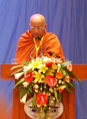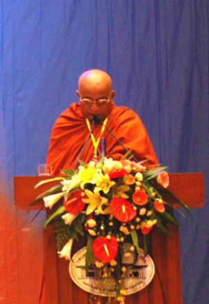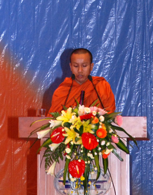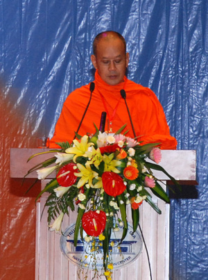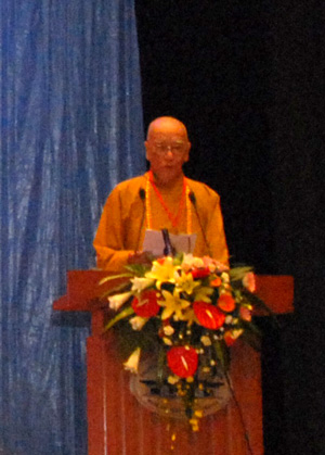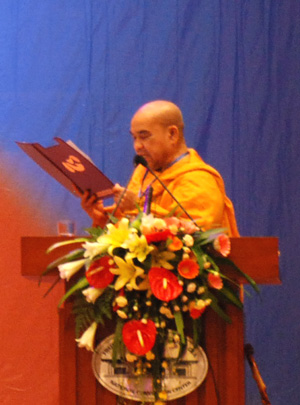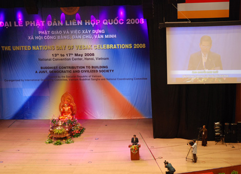 Diễn văn mở đầu “Bằng tình thần đoàn kết quốc tế và hữu nghị của tình Pháp lữ và nhân loại trên hành tinh này, quý vị đã đáp lời mời của Giáo hội Phật giáo Việt Nam và Ủy ban Tổ chức quốc tế, quang lâm tham dự Đại lễ Phật đản Liên hợp quốc, Hội thảo quốc tế với chủ đề: “Phật giáo và sự đóng góp cho công bằng xã hội, dân chủ, văn minh” lần đầu tiên tại Việt Nam sau hơn 2000 năm Phật giáo có mặt tại Việt Nam.”