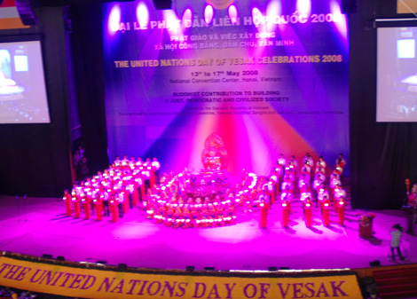 Đọc thông điệp của Tổng thư ký Liên Hợp Quốc Ban Kin Moon tại Đại lễ, ông John Hendra, Điều phối viên UNDP tại Việt Nam nói, trong bối cảnh thế giới hiện nay, thông điệp của Đức Phật vì hòa bình, từ bi, tình thương đối với mọi sinh linh ngày càng trở nên khẩn thiết.