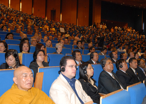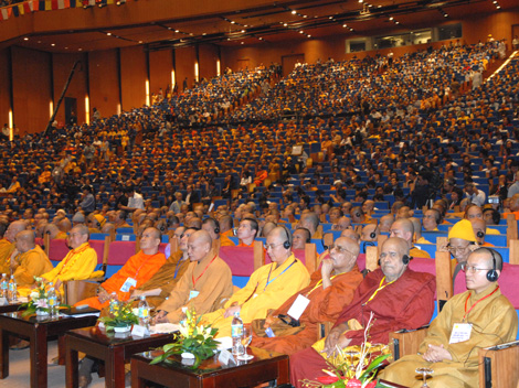 Tiếp theo, Ngài Nguyễn Minh Triết – Chủ tịch nước đọc diễn văn. Chủ tịch Nước bày tỏ niềm vui và hoan nghênh sự có mặt của đông đảo quý vị chư tôn đức giáo phẩm đại diện cho Phật giáo trên khắp thế giới.