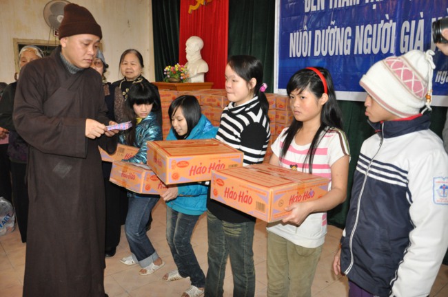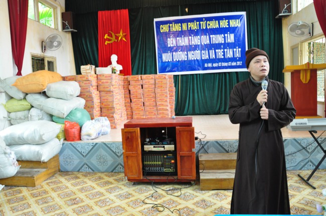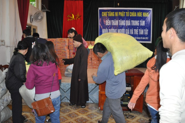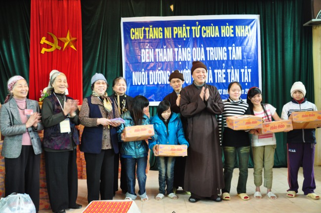 Đã nhiều năm liền, chùa Hòe Nhai – Hà Nội luôn đi đầu trong những phong trào làm từ thiện trên khắp mọi nơi của Tổ Quốc. Từ mảnh đất Hà Giang xa xôi, cho đến những đồng bào sống ven sông Hồng, hay những bữa cơm chay từ thiện hàng tháng tại các bệnh viện Nhi, bệnh viện huyết học… Đó là thể hiện tinh thần cứu khổ, ban vui cũng như noi gương lời nguyện thứ mười hai của Đức Phật Dược Sư “Trước cho ăn, sau cho nghe Pháp”.