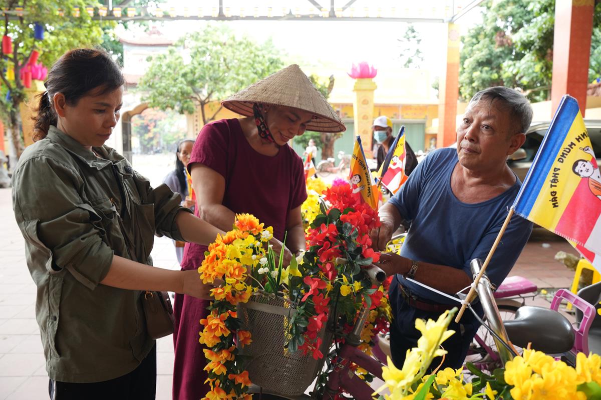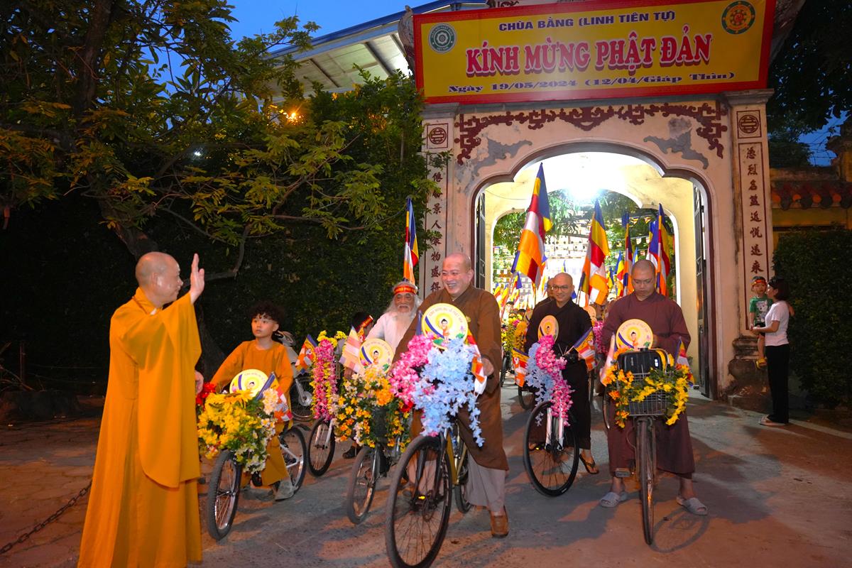 Ngay từ đầu giờ chiều, các Phật tử trong đạo tràng Pháp Hoa chùa Bằng cùng các em nhỏ và bà con trong khu dân cư Bằng Liệt đã vân tập về chùa nô nức chuẩn bị cho chương trình. Gần 200 chiếc xe đạp, xe điện, xe máy đã được trang trí cờ hoa rực rỡ, cùng hình ảnh Đức Phật sơ sinh trang nghiêm, thể hiện tấm lòng chân thành của người con Phật dâng lên Đấng Từ Phụ nhân kỷ niệm 2568 năm ngày Ngài thị hiện ở cõi Sa Bà.