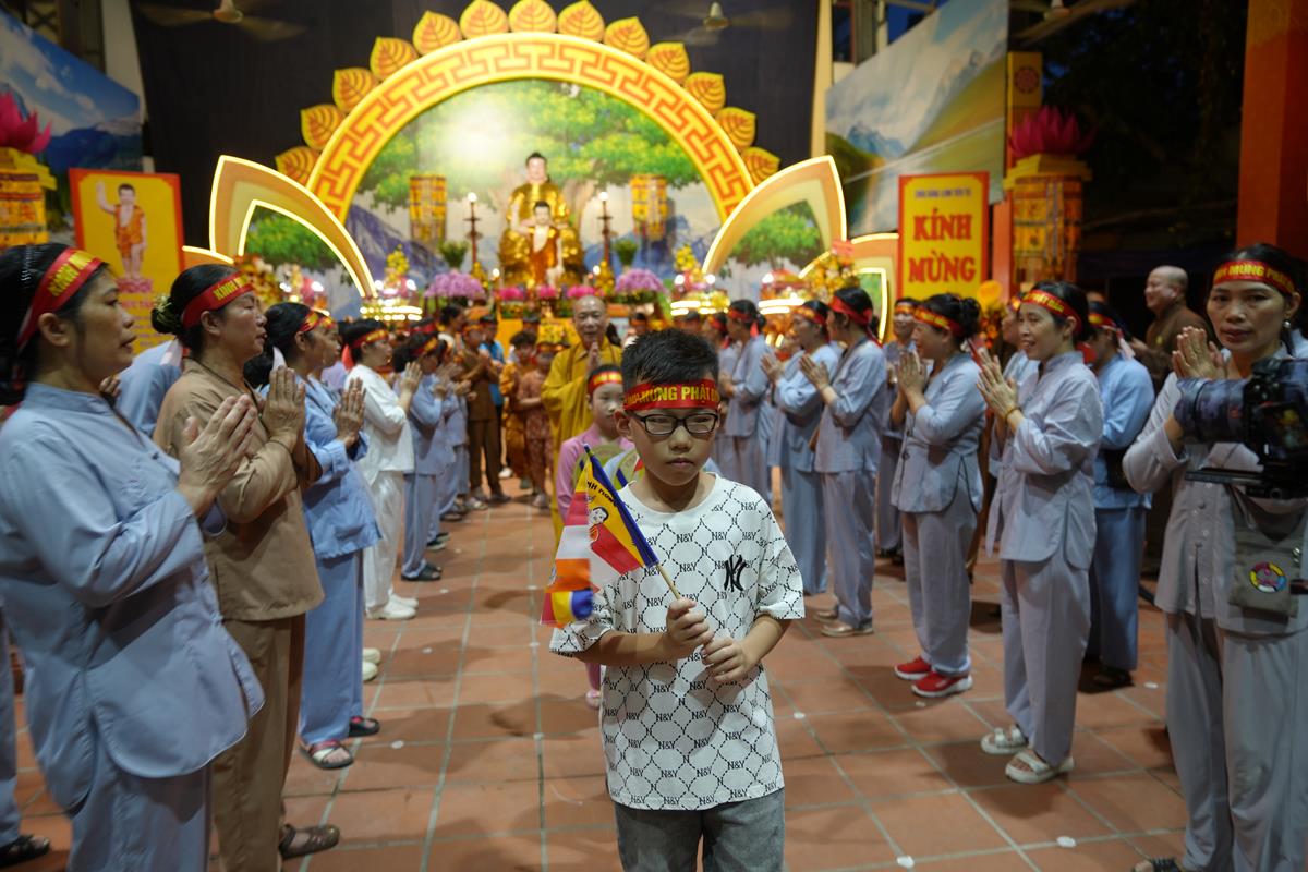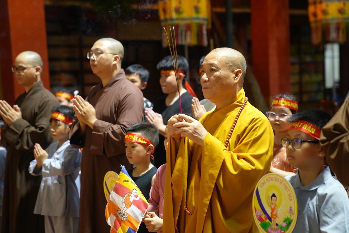 Đúng 18h30 phút, Hòa thượng Thích Bảo Nghiêm – Phó Chủ tịch HĐTS, Trưởng ban Hoằng pháp TƯ GHPGVN, Trưởng BTS PG TP. Hà Nội, Trụ trì chùa Bằng đã cùng chư Tăng bản tự cử hành nghi thức niêm hương bạch Phật, nguyện cầu cho buổi lễ diễu hành được diễn ra thành tựu viên mãn.