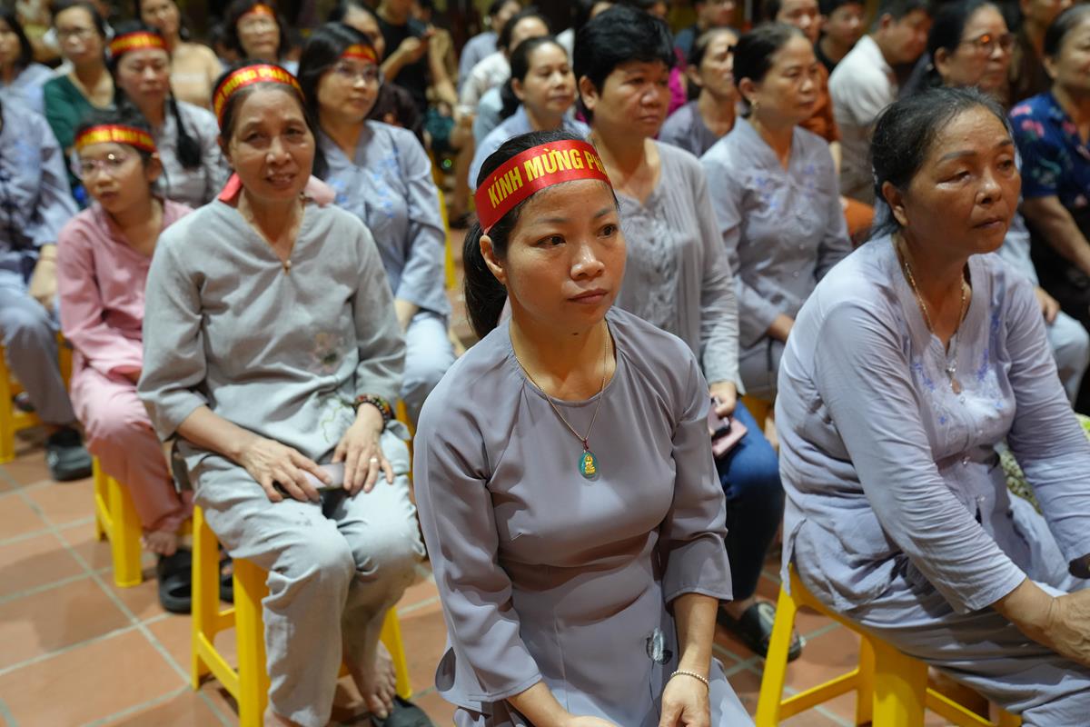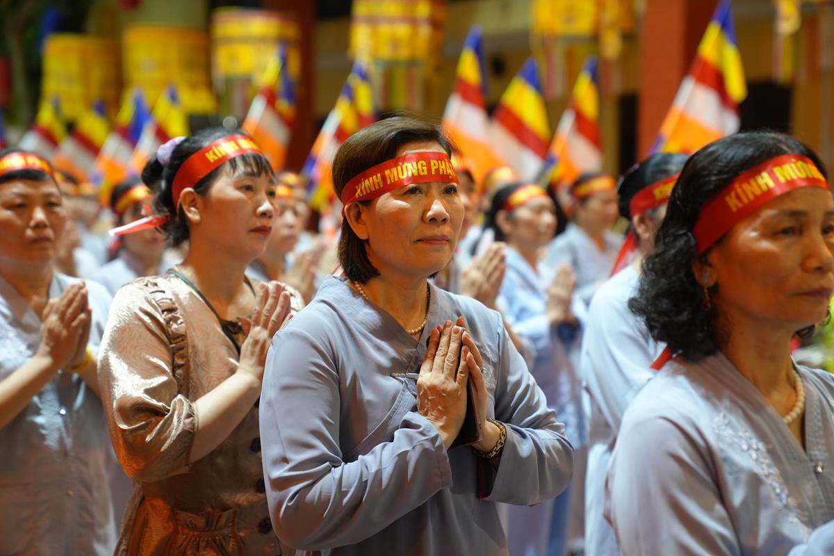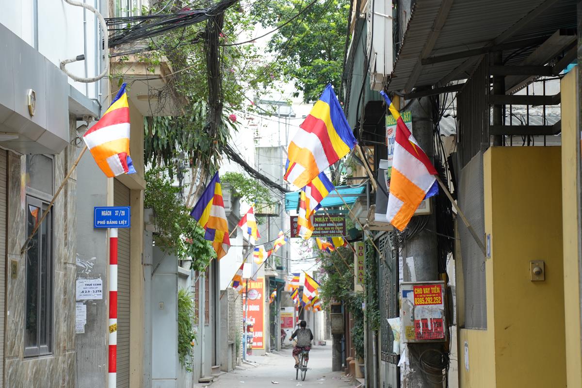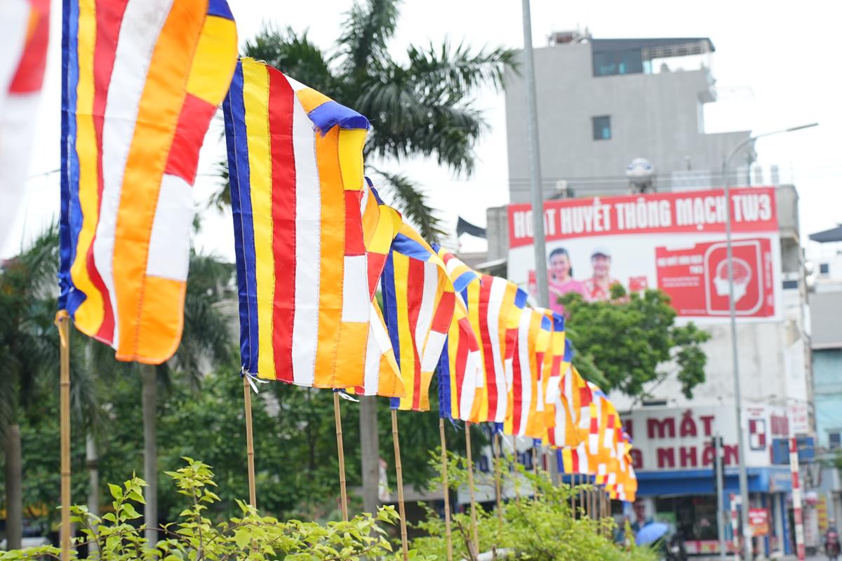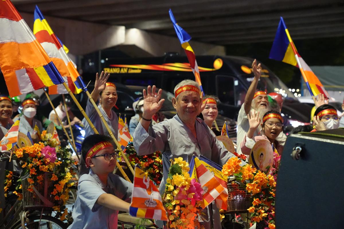 Những lá cờ Phật giáo tung bay phấp phới rực rỡ trong gió hè, những nụ cười hạnh phúc rạng ngời bừng sáng gương mặt của những cụ già, em bé và các cô bác trong đoàn khiến đi đến đâu, người dân cũng đều hân hoan vẫy tay chào mừng, thậm chí cũng tình nguyện hòa mình vào cùng đoàn và sẵn sàng dừng xe nhường đường để đoàn rước đi qua.