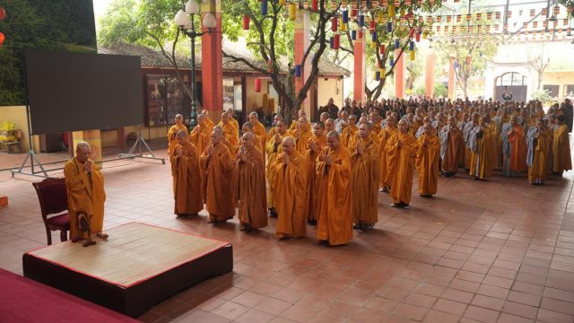 Chư vị Nghiệp sư và các Giới tử lễ tạ Hòa thượng Thích Gia Quang – Phó chủ tịch HĐTS, Trưởng Ban Thông tin truyền thông TW GHPGVN