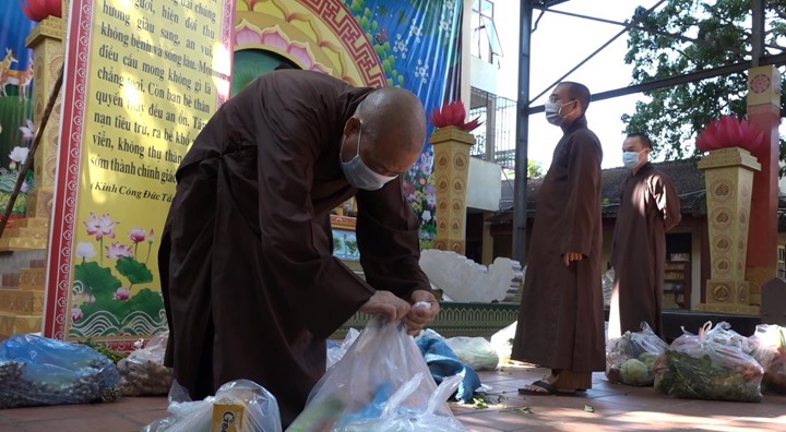 Thấu hiểu nỗi khó khăn vất vả của người dân, Hoà thượng Thích Bảo Nghiêm – Phó chủ tịch HĐTS, Trưởng Ban hoằng pháp TƯ GHPGVN, trụ trì chùa Bằng (số 63 phố Bằng Liệt, phường Hoàng Liệt, quận Hoàng Mai, Hà Nội) cùng chư Tăng bản tự trong những ngày này đã liên lạc với từng trường hợp cần giúp đỡ xung quanh Chùa, trong phạm vi địa bàn phường Thanh Liệt và phường Hoàng Liệt qua ứng dụng Zalo, để gửi tặng họ những phần quà cứu trợ. Mỗi phần bao gồm 10kg gạo, miến, dầu ăn, xì dầu, bánh kẹo, rau củ, sữa tươi và khẩu trang y tế.