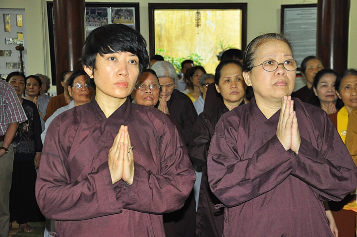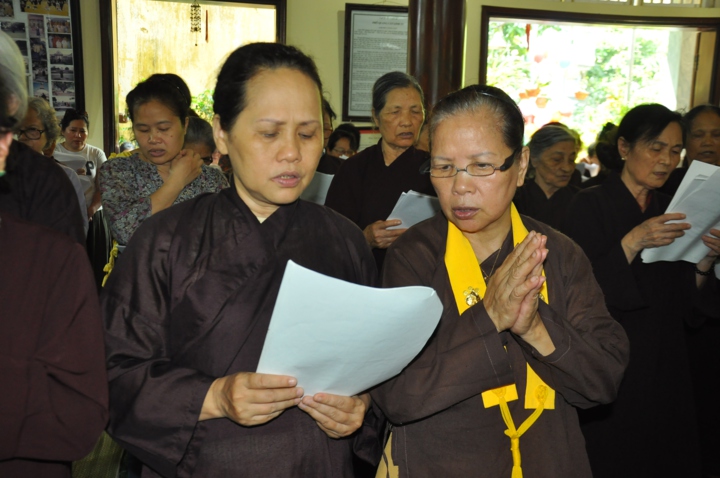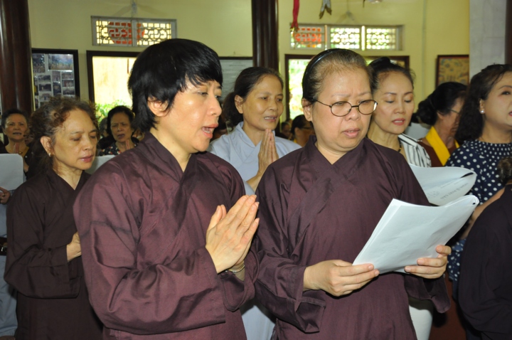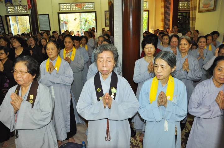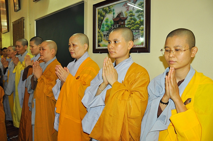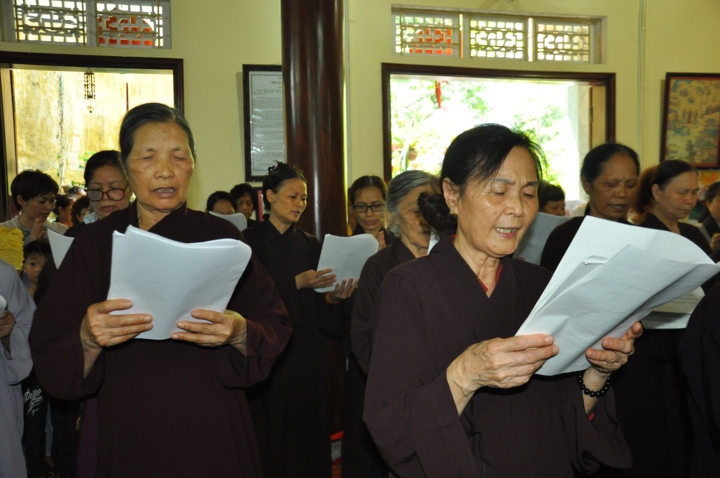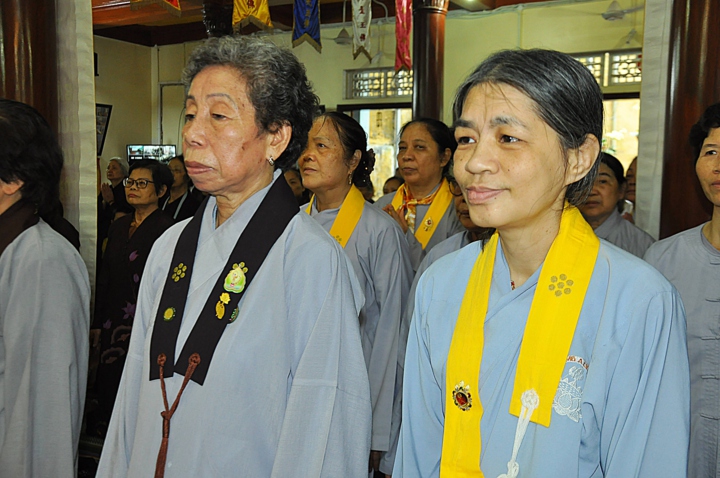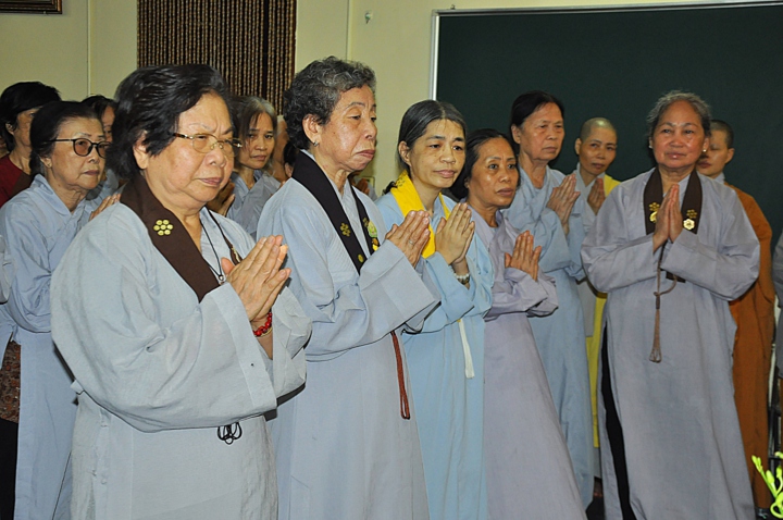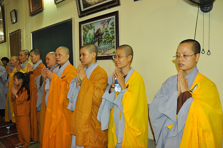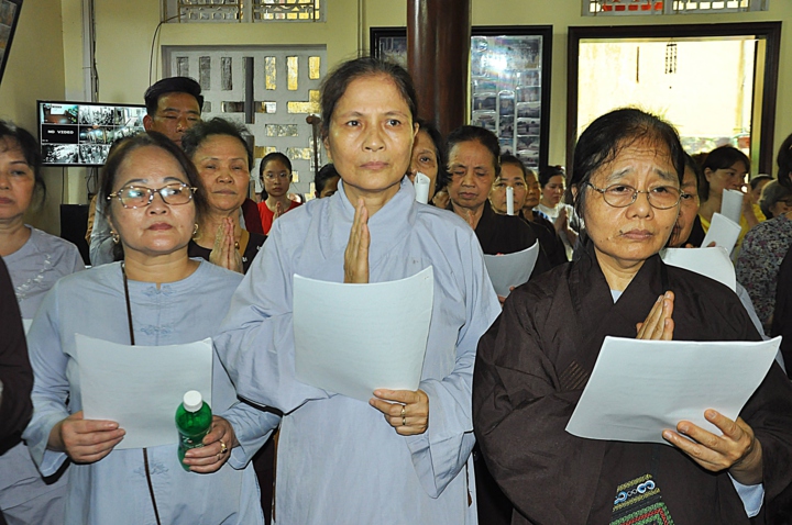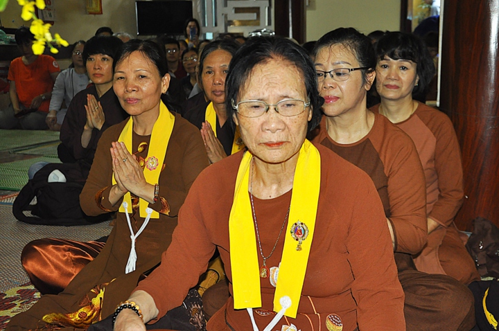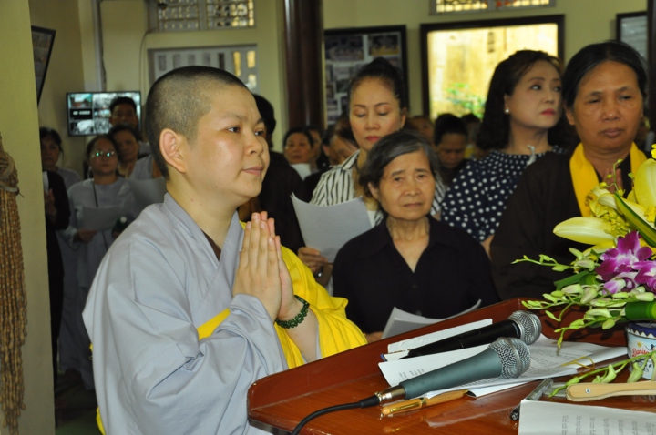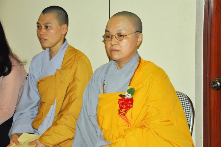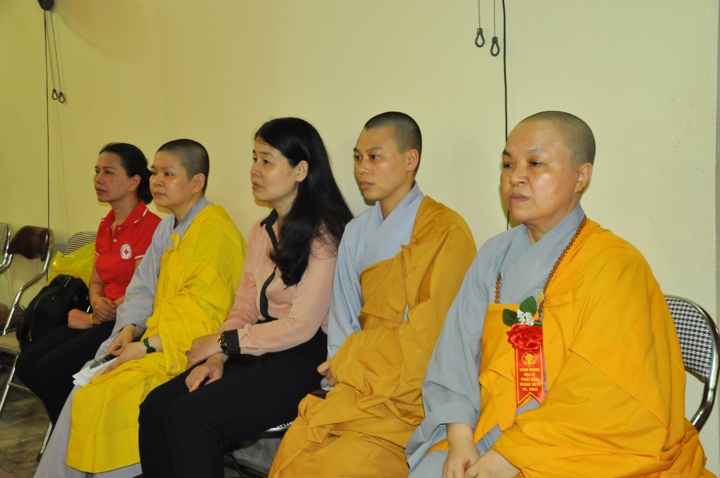 Chứng minh buổi lễ có: Ni sư Thích Diệu Tâm – Ủy viên Thường trực Phân ban Ni giới TW, Ủy viên Ban Hoằng pháp TW, trụ trì chùa Cát Linh cùng chư tôn đức Ni bản tự.