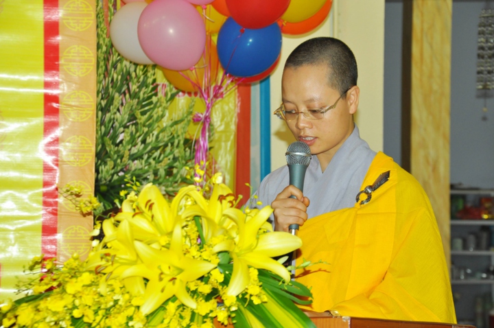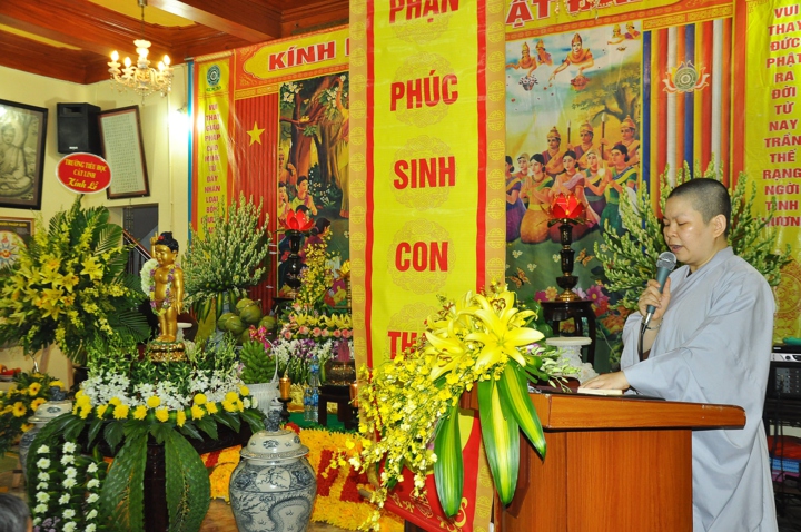Sau đó, Ni sư Thích Minh Tiến đã lên tuyên đọc Diễn văn Đại lễ Phật Đản PL.2563 – DL.2019 của Hòa Thượng Chủ tịch HĐTS TW GHPGVN.