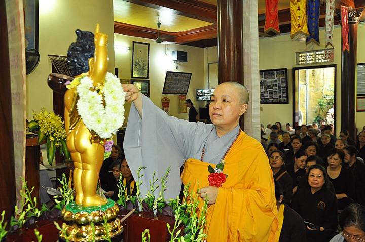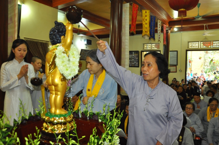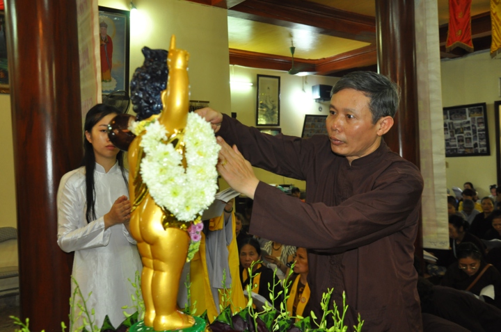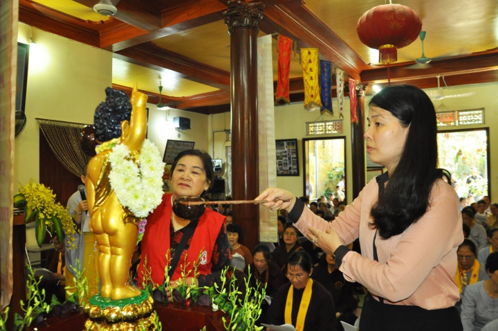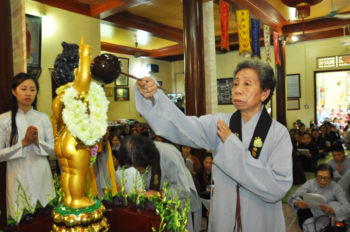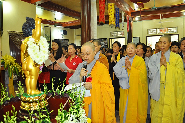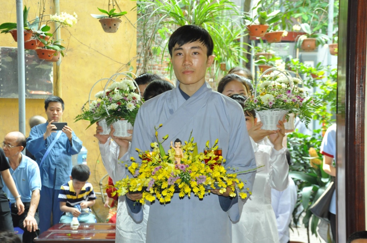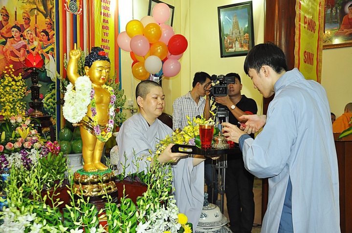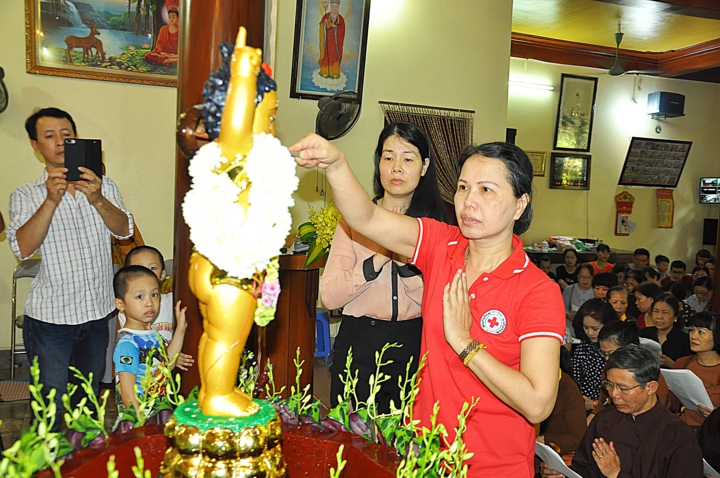 Sau khi Phật tử Trần Thị Vinh đại diện cho hàng Phật tử có đôi lời cảm niệm, buổi lễ Phật đản của Chùa Cát Linh đã được diễn ra theo nghi thức Phật đản truyền thống trong không khí trang nghiêm trọng thể của toàn thể đại chúng