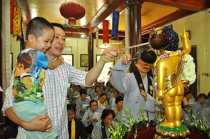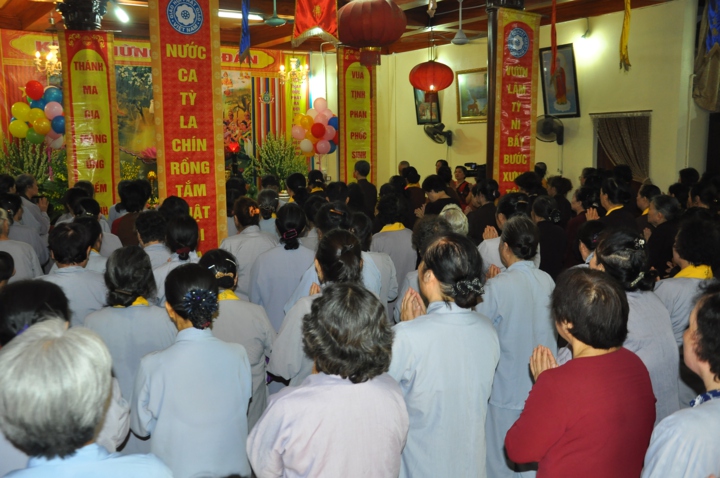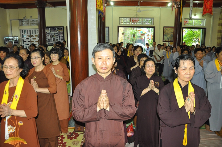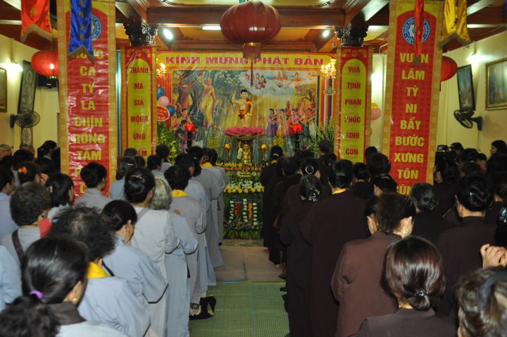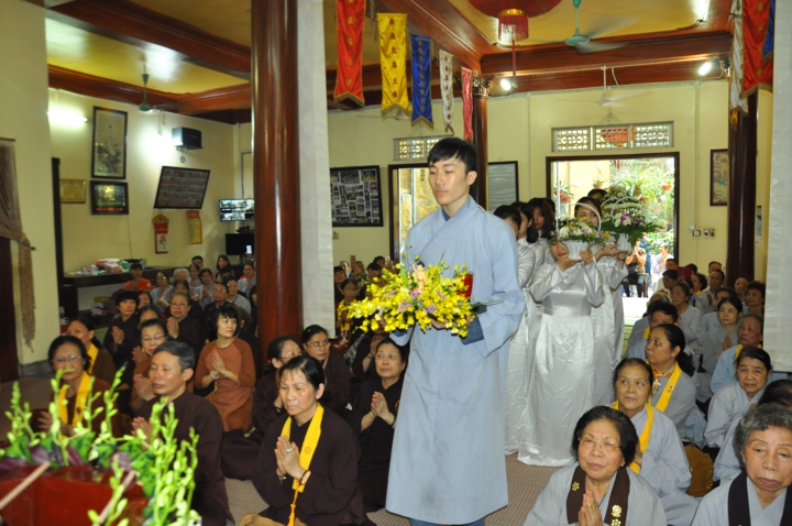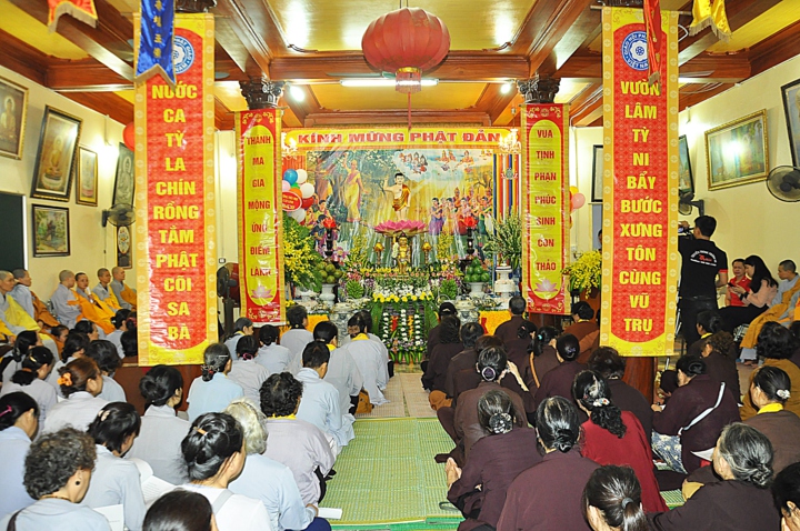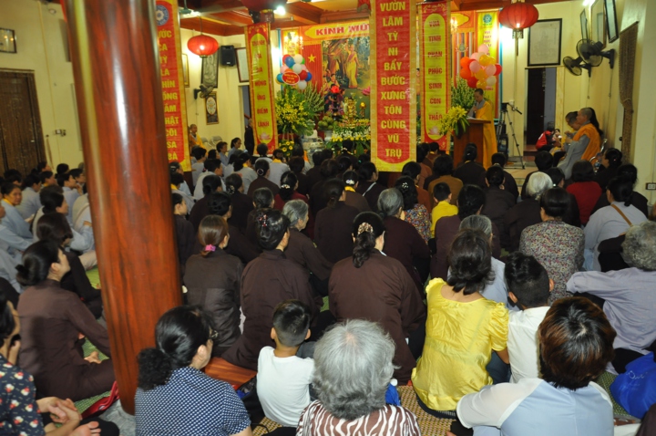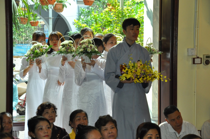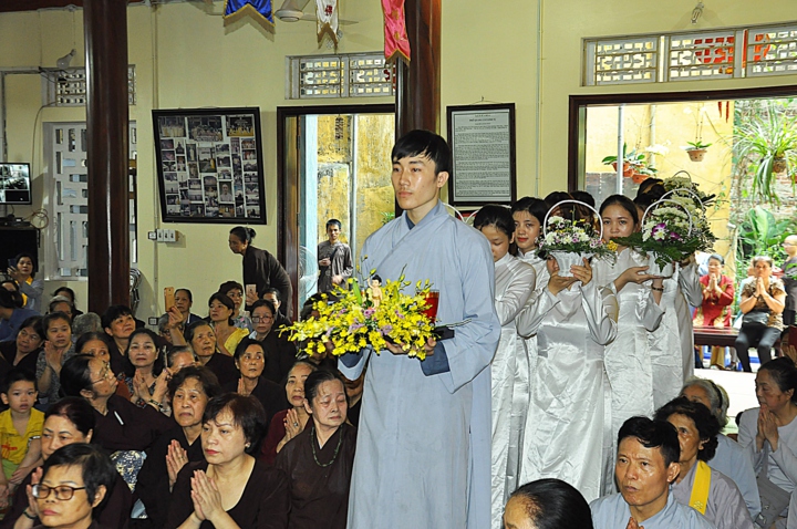 Sau khi Phật tử Trần Thị Vinh đại diện cho hàng Phật tử có đôi lời cảm niệm, buổi lễ Phật đản của Chùa Cát Linh đã được diễn ra theo nghi thức Phật đản truyền thống trong không khí trang nghiêm trọng thể của toàn thể đại chúng