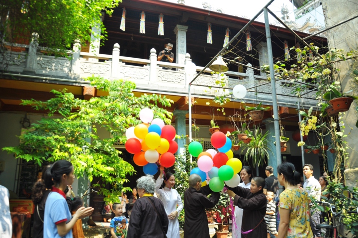Kết thúc buổi lễ, chư Tôn đức cùng quý quan khách chính quyền đã thực hiện nghi thức thả bóng bay cầu nguyện thế giới hòa bình, nhân dân an lạc.