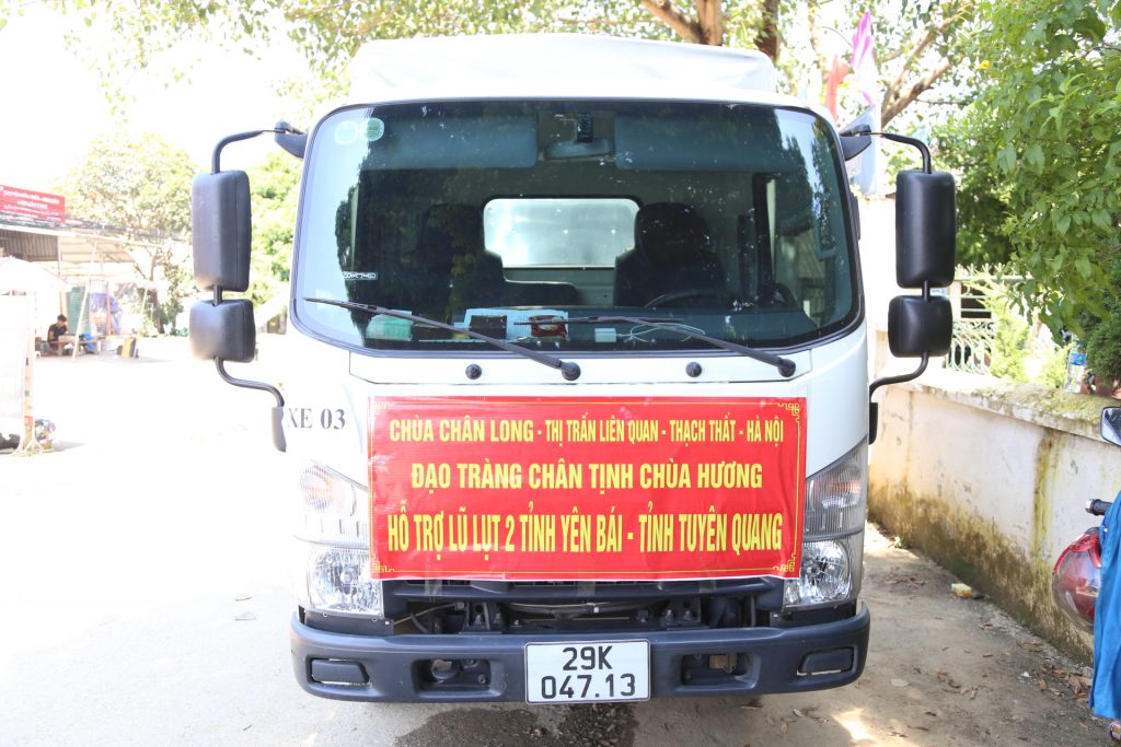 Trong ngày 19, 20-9, đoàn từ thiện chùa Chân Long, các cơ quan, đoàn thể, doanh nghiệp TDP Đụn Dương, TT Liên Quan, huyện Thạch Thất, TP Hà Nội; đạo tràng Chân Tịnh, chùa Hương, huyện Mỹ Đức, TP Hà Nội do ĐĐ. Thích Đạo An, trụ trì chùa Chân Long làm trưởng đoàn đã đến thăm và trao quà hỗ trợ đến bà con bị ảnh hưởng bão số 3 tại tỉnh Yên Bái và Tuyên Quang.