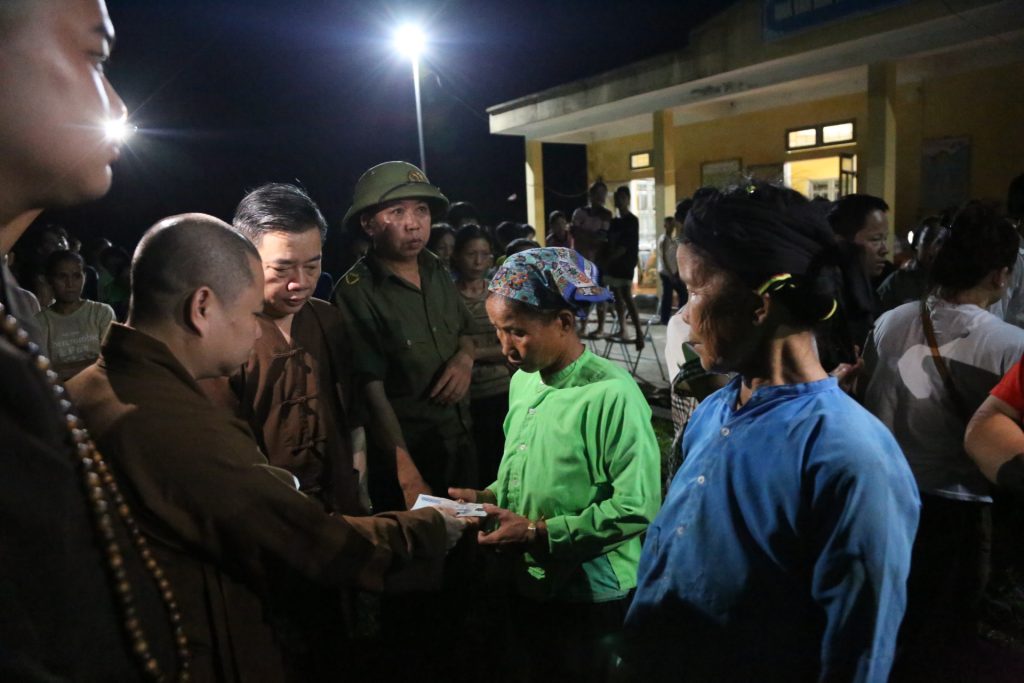 Với tinh thần từ bi cứu khổ của đạo Phật, Đoàn đã trao 200 suất quà đến bà con. Trong đó 50 suất trao cho bà con xã Lâm Giang, huyện Văn Yên, tỉnh Yên Bái; 100 suất trao cho bà con xã Lâm Thượng, huyện Lục Yên, tỉnh Yên Bái; 50 suất trao cho bà con xã Tri Phú, huyện Chiêm Hóa, tỉnh Tuyên Quang.