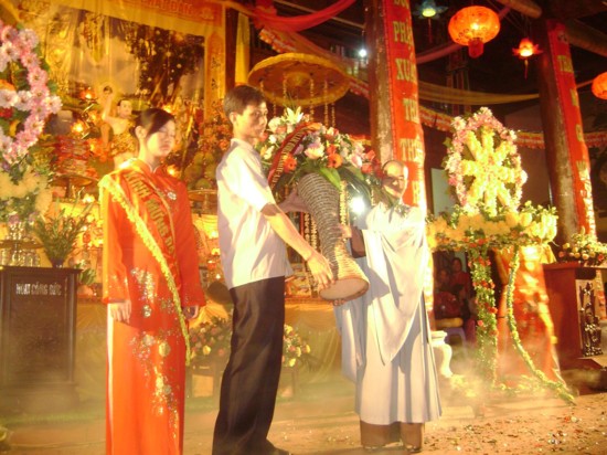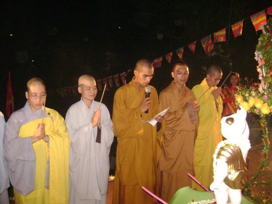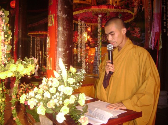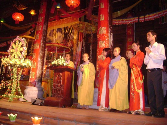 Quang lâm chứng minh buổi lễ có các Đại Đức, Tăng Ni trên địa bàn quận Long Biên, Trụ trì chùa Cự Linh có Sư thầy Thích Đàm Thuỷ.