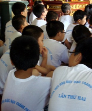 Các em suy tư khi đang tiếp thu những lời dạy của ĐĐ Thích Minh Tuân