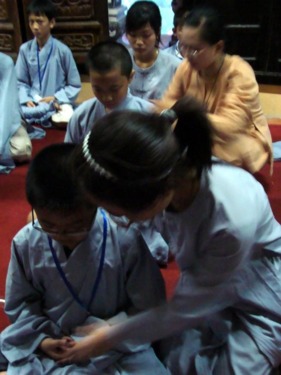 Quý thầy hướng dẫn các em ngồi Thiền