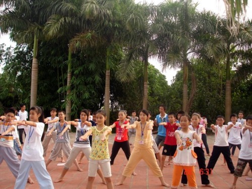 Các em tập khí công buổi sáng