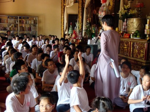 Bên cạnh đó các em được hướng dẫn lễ Phật, tụng kinh, tọa thiền, mỗi ngày 2 thời đó là buổi tối và sáng sớm. Theo lịch sinh hoạt của khóa tu, mỗi ngày các em học tập bắt đầu từ 5giờ sáng đến 22g00 tối. Ngoài giờ tu và học chính các em còn tham gia các trò chơi dân gian, tập khí công, học nấu ăn, học hát, học lịch sử bằng nghệ thuật kịch nói, lao tác, v.v…
