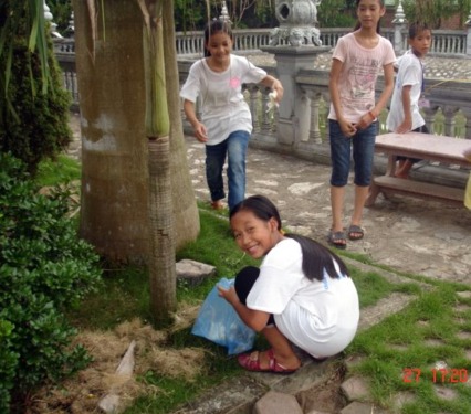 Giờ lao tác của các em khóa tu.