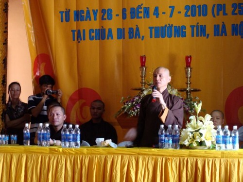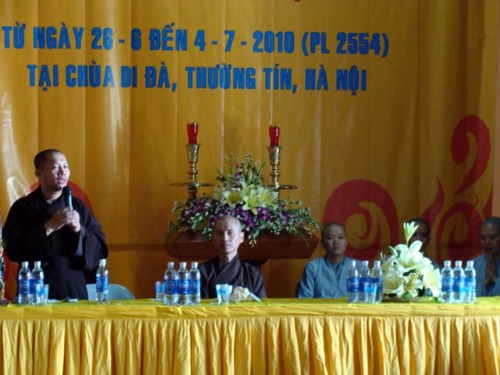 Bài diễn văn của anh Nguyễn Hải Quân – Chúng phó đạo tràng Phật Hạnh – Trưởng Ban tổ chức khóa tu, đã mở đầu chương trình lễ khai giảng sáng hôm nay. Anh nhấn mạnh “Để hướng các em vào môi trường sinh hoạt lành mạnh, không sa đà với các tệ nạn xã hội; đồng thời cũng để tiếp nối những kết quả ban đầu đạt được từ khóa tu mùa hè lần I (năm 2009). Năm nay Đạo tràng Phật Hạnh (Hà Nội) tiếp tục tổ chức khóa tu mùa hè lần thứ II (năm 2010) tại chùa Di Đà cho các em học sinh.