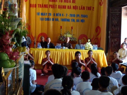 Bên cạnh đó các em được hướng dẫn lễ Phật, tụng kinh, tọa thiền, mỗi ngày 2 thời đó là buổi tối và sáng sớm. Theo lịch sinh hoạt của khóa tu, mỗi ngày các em học tập bắt đầu từ 5giờ sáng đến 22g00 tối. Ngoài giờ tu và học chính các em còn tham gia các trò chơi dân gian, tập khí công, học nấu ăn, học hát, học lịch sử bằng nghệ thuật kịch nói, lao tác, v.v…