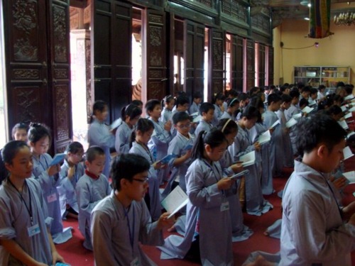 Hình ảnh các em tụng kinh, lễ Phật