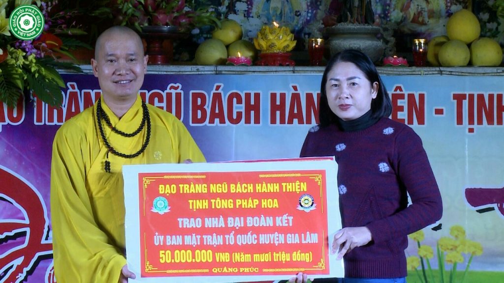 Chứng minh tại buổi lễ có ĐĐ.Thích Quảng Phúc – Trưởng Ban từ thiện xã hội GHPGVN huyện Gia Lâm, trụ trì chùa Dương Đình, trưởng Ban tổ chức đại lễ, chư tôn đức Tăng Ni và đông đảo quý Phật tử các đạo tràng về tham dự.