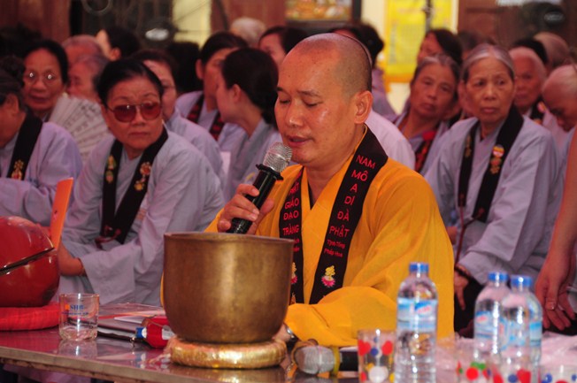 Trước khi buổi Đại lễ được chính thức bắt đầu, Đại Đức Thích Quảng Phúc đã làm lễ quy y cho một số Phật tử phát tâm quy y trong mùa Vu lan năm nay. Và sau đó là thời khóa tụng kinh Vu Lan – Báo Hiếu cầu siêu cho cửu huyền thất tổ, cha mẹ nhiều đời được siêu sinh Tịnh Độ.