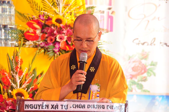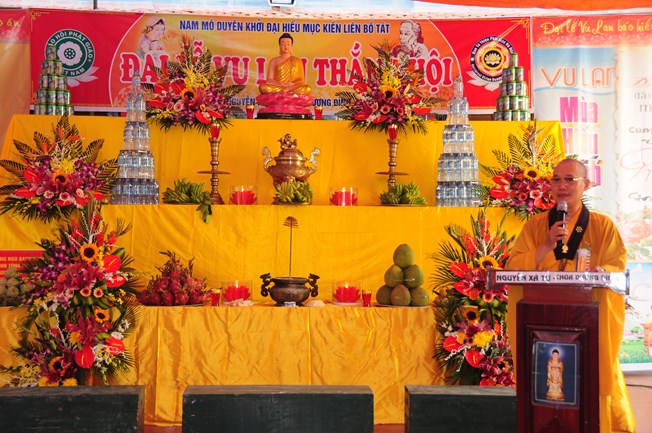 Thay mặt cho Ban tổ chức, Đại đức Thích Quảng Phúc, trụ trì chùa Dương Đình đã bùi ngùi xúc động phát biểu khai mạc Đại lễ vu lan báo hiếu năm nay. Trong bài phát biểu của mình, Đại đức đã cho đại chúng hiểu được ý nghĩa của ngày lễ Vu lan, ngày xá tội vong nhân và khuyến tấn các Phật tử cần phải học tập và noi theo tấm gương hiếu hạnh của Ngài đại hiếu Mục Kiền Liên Bồ Tát.