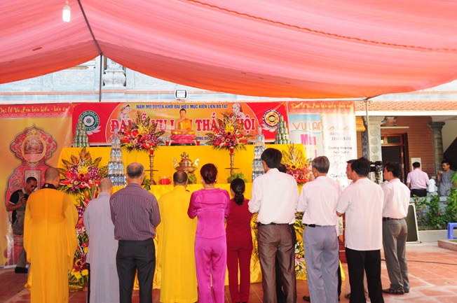 Trước khi kết thúc buổi lễ, Chư tôn đức Tăng Ni, chính quyền địa phương và các Phật tử đã làm lễ dâng hương bạch Phật, trì chú cầu nguyện thế giới hòa bình, hồi hướng công đức cho khắp pháp giới chúng sinh, ông bà, cha mẹ hiện tiền được an lạc, mạnh khỏe. Đồng thời hồi hướng công đức cho ông bà, cha mẹ quá vãng được sinh về cảnh giới lành.