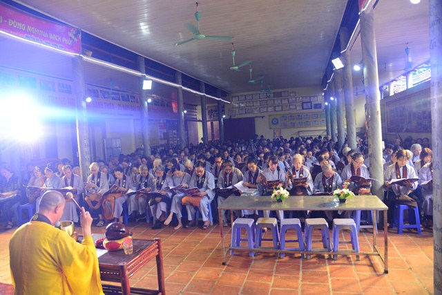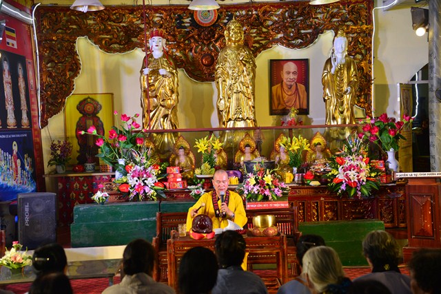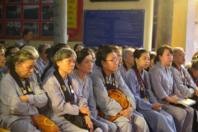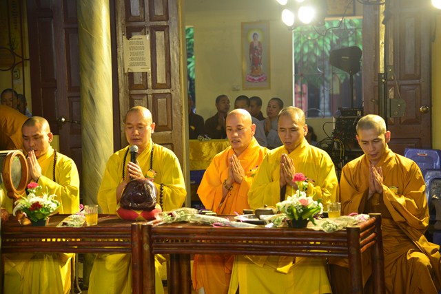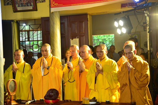 Trước khi kết thúc buổi lễ, chư tôn đức Tăng Ni và quý Phật tử đã cử hành nghi lễ niêm hương bạch Phật, tụng kinh Vu Lan – Báo Hiếu, cầu nguyện cho ông bà cha mẹ hiện tiền được phúc thọ tăng long, ông bà cha mẹ quá vãng được siêu sinh miền Cực Lạc.