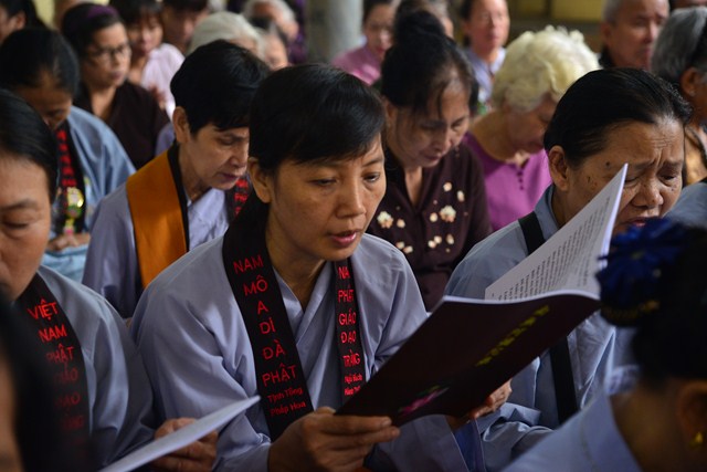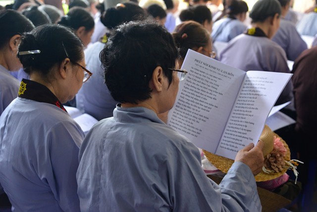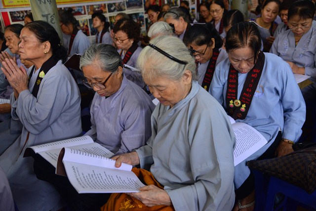 Phật tử tụng kinh cầu nguyện nhân Đại lễ Vu Lan Báo Hiếu