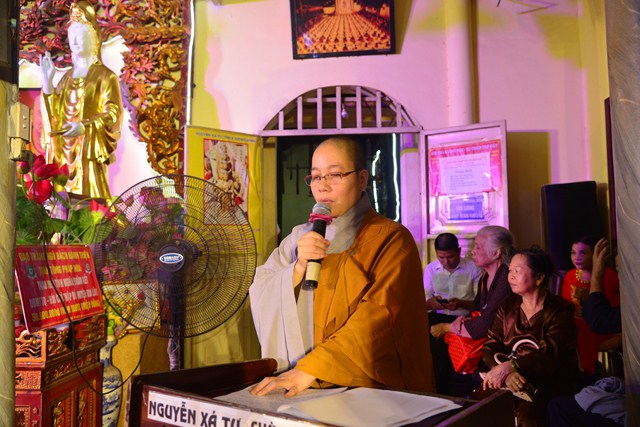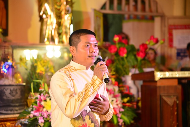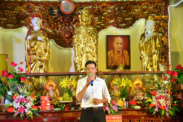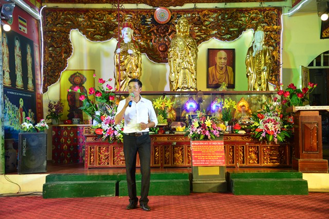 Phát biểu khai mạc buổi lễ, Đại đức Thích Quảng Hiếu – Trưởng Ban tổ chức đại lễ nhấn mạnh: “ Những ngày trong tháng 7 âm lịch không chỉ là ngày Vu lan thắng hội, ngày hiếu hạnh của cho những người con tưởng nhớ về công ơn sinh thành dưỡng dục của ca mẹ. Bên cạnh đó còn là ngày “ Xá tội vong nhân”, ngày cầu siêu bạt độ cho cửu huyền thất tổ, chiến sỹ trận vong, đồng bào tử nạn. Đó là ân, là nghĩa mà ai trong mỗi chúng ta cũng ôm ấp, ưu tư và hằng mong báo đáp thâm ân trời biển này.” Đồng thời, Đại đức cũng sơ qua về ý nghĩa của ngày lễ Vu Lan Báo Hiếu và ý nghĩa của lễ cài hoa hồng trong ngày lễ mang đầy tính nhân văn này.