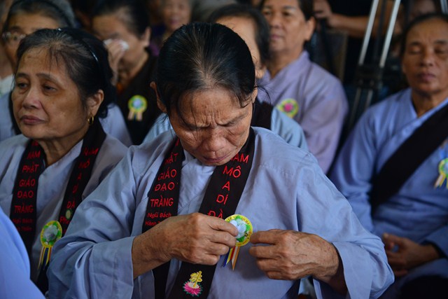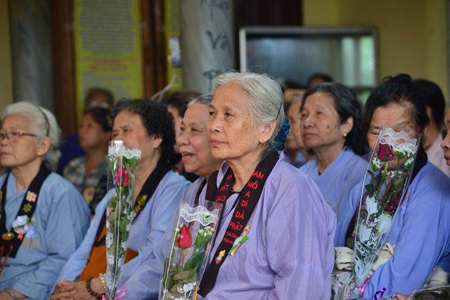 Tại buổi lễ, Chư tôn đức tăng ni và quý Phật tử đã được tham dự nghi thức bông hồng cài áo trong Phật giáo nhân mùa Vu Lan Báo Hiếu. Đây là nghi lễ do Thiền sư Thích Nhất Hạnh khởi xướng vào những năm của thập niên 1960. Nếu ai còn mẹ sẽ được cài lên ngực áo của mình một bông hoa hồng màu đỏ thắm, còn những ai mất mẹ sẽ ngậm ngùi cài lên ngực áo của mình một bông hoa hồng màu trắng.